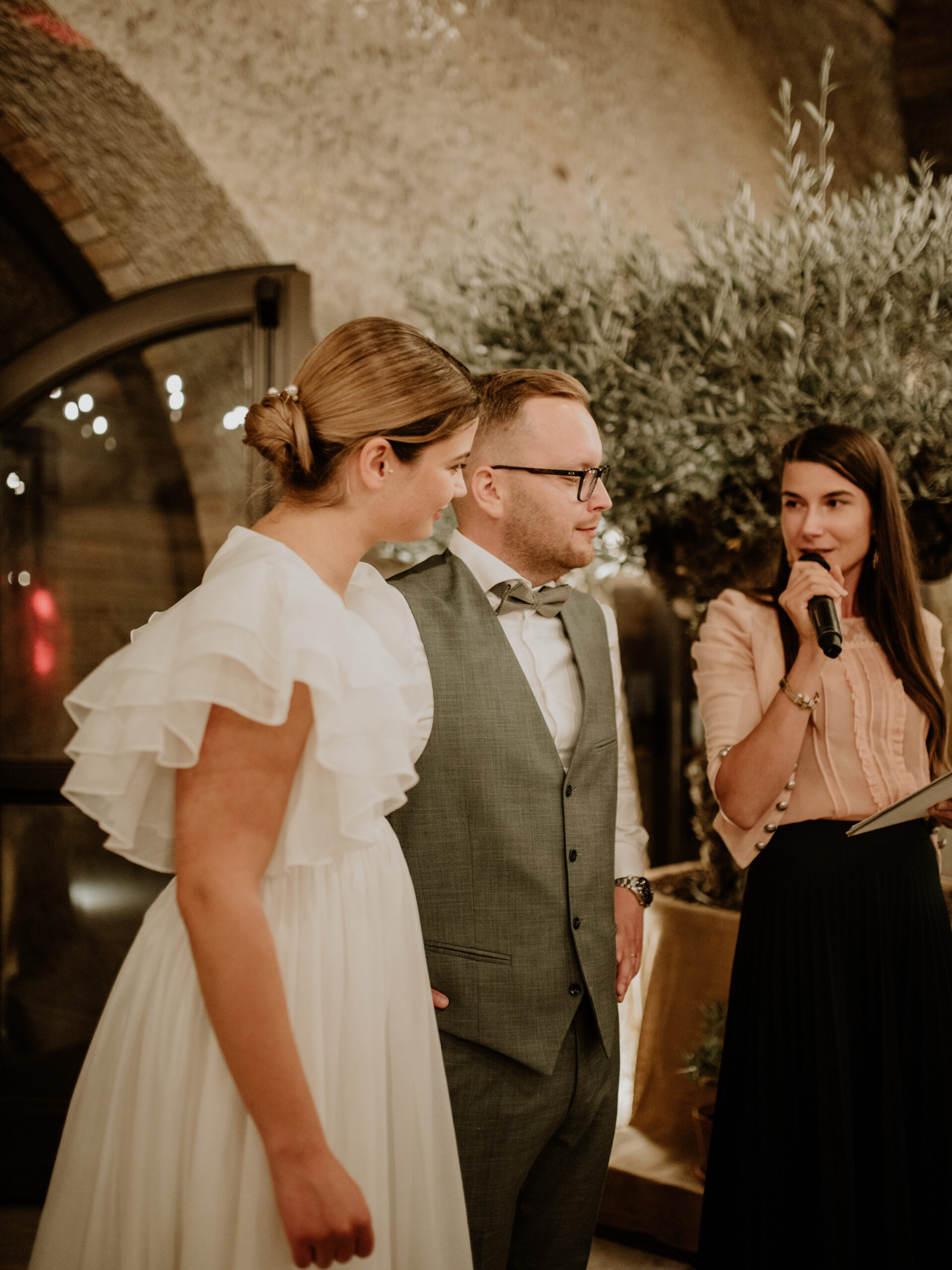 „Vivien ceremóniamesterként vett részt az esküvőnkön, szívből tudom ajánlani, rendkívül odafigyelő és szakszerű volt nemcsak a nagy napunkon, hanem az azt megelőző készülődés és tervezgetés során is. Nélküle nem sikerült volna ilyen jól.